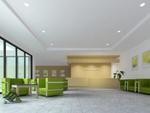 受付カウンターでの来客対応、取次など