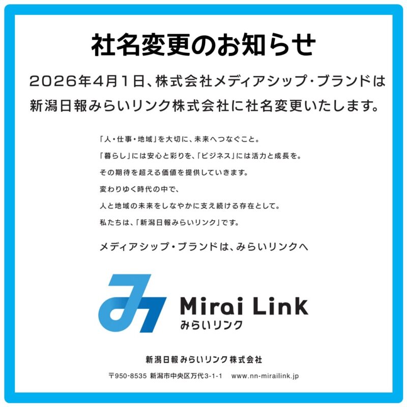 「人・仕事・地域」を大切に、未来へつなぐこと。 「暮らし」には安心と彩りを、「ビジネス」には活力と成長を。 その期待を超える価値を提供していきます。 変わりゆく時代の中で、人と地域の未来をしなやかに支え続ける存在として。 私たちは、「新潟日報みらいリンク」です。